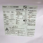 現地では外装の状態、庫内の清潔度、棚やケースなどの付属品の有無、冷却動作を確認しました。AQR-20K(S)は200Lクラスの冷蔵庫で、中古市場でも単身世帯や二人暮らし向け物件で需要のあるサイズです。当社では家電の再販ルートを複数確保しているため、状態を確認したうえで再販可能と判断した商品は適正価格で査定を行っています。