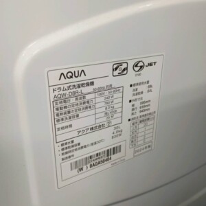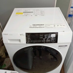 AQUA ドラム式洗濯乾燥機 AQW-D8R-Lは2024年製と新しいモデルであり、8kgクラスのドラム式洗濯機は単身世帯から二人世帯まで需要が高いサイズ帯です。特に今回の個体は外観・ドラム内部ともに状態が良好で、付属パーツも揃っていたことから中古市場でも再販しやすい商品と判断しました。