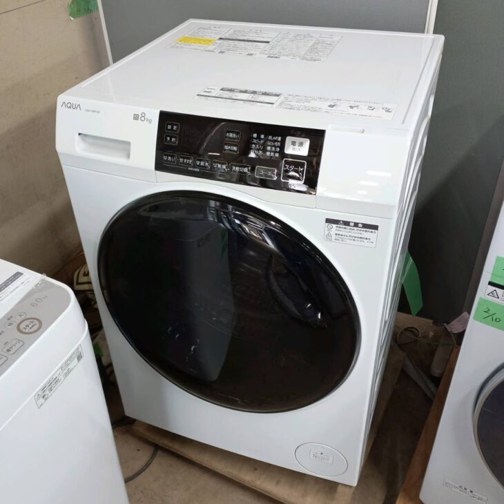 AQUA ドラム式洗濯乾燥機 AQW-D8R-Lは2024年製と新しいモデルであり、8kgクラスのドラム式洗濯機は単身世帯から二人世帯まで需要が高いサイズ帯です。特に今回の個体は外観・ドラム内部ともに状態が良好で、付属パーツも揃っていたことから中古市場でも再販しやすい商品と判断しました。