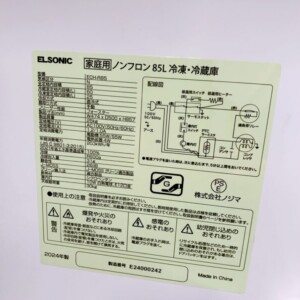今回は東京都国分寺市にお住まいの40代女性より、ELSONIC 家庭用ノンフロン冷凍冷蔵庫 ECH-R85(2024年製)の出張買取をご依頼いただきました。85Lのコンパクトサイズで、一人暮らし用やセカンド冷蔵庫として人気のあるモデルです。お客様は賃貸マンションにお住まいで、引っ越しに伴う家電整理のため当社の出張買取サービスをご利用くださいました。