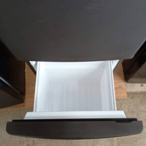 庫内は非常にきれいな状態で、棚板やドアポケット、野菜ケースなどの付属パーツもすべて揃っている状態でした。冷却動作も問題なく、冷蔵・冷凍ともにしっかり冷えることを確認できたため、中古家電として再販可能な良好なコンディションでした。