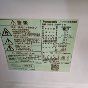 東京都国立市へ出張買取 Panasonic NR-B17HW-T 冷凍冷蔵庫 2022年製 全体的にきれいな状態のため適正価格で査定しました