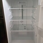 庫内は非常にきれいな状態で、棚板やドアポケット、野菜ケースなどの付属パーツもすべて揃っている状態でした。冷却動作も問題なく、冷蔵・冷凍ともにしっかり冷えることを確認できたため、中古家電として再販可能な良好なコンディションでした。