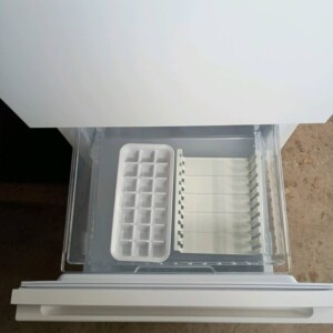 庫内の棚板やドアポケット、ケースなどの付属パーツはすべて揃っており、食品汚れやにおいもほとんどなく清潔な状態でした。冷蔵・冷凍ともに動作確認を行ったところ問題なく稼働しており、中古市場でも再販売が可能な状態と判断しました。
