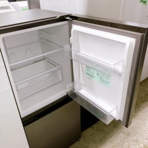 庫内も全体的に清潔で、棚板やドアポケットなどの付属品はすべて揃っていました。ただし冷凍室の一部に軽微な汚れが確認されましたが、再販前のクリーニングで十分に対応できる範囲でした。冷却動作も問題なく確認でき、中古家電として再販売可能な状態でした。
