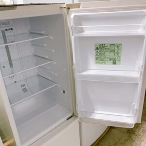 拝見したNR-B17FW-Wは、2022年製らしく全体として比較的きれいな状態でした。冷蔵室内の棚板やドアポケット、下段ケースも揃っており、庫内に強い汚れや目立つ破損は見られませんでした。冷凍室の引き出しも割れなどはなく、通常使用の範囲で保たれている印象です。外装については、前面や下段引き出しまわりに細かな擦れ跡が少し見受けられるものの、大きなへこみや目立つ傷はなく、再販時にも案内しやすい状態でした。庫内容量は168Lで、2022年製の比較的新しいモデルであることも確認できました。