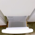 拝見したNR-B17FW-Wは、2022年製らしく全体として比較的きれいな状態でした。冷蔵室内の棚板やドアポケット、下段ケースも揃っており、庫内に強い汚れや目立つ破損は見られませんでした。冷凍室の引き出しも割れなどはなく、通常使用の範囲で保たれている印象です。外装については、前面や下段引き出しまわりに細かな擦れ跡が少し見受けられるものの、大きなへこみや目立つ傷はなく、再販時にも案内しやすい状態でした。庫内容量は168Lで、2022年製の比較的新しいモデルであることも確認できました。
