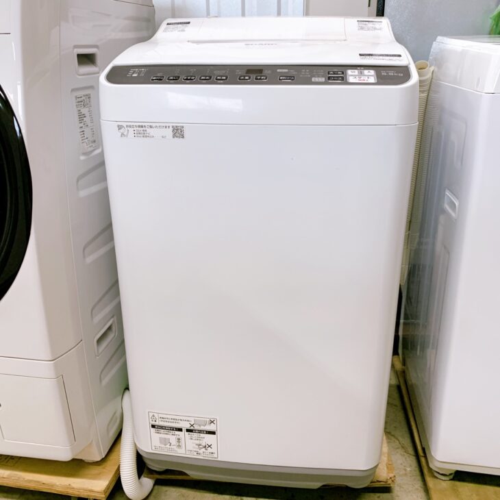 お引き取りした商品はSHARP(シャープ)洗濯乾燥機 ES-TX5EJ-Wで、洗濯容量5.5kg・乾燥容量3.5kgの縦型タイプの洗濯乾燥機です。省スペースでも設置しやすいサイズで、単身者や二人世帯の家庭で多く利用されているモデルです。