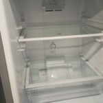 庫内についても棚板・ドアポケット・野菜ケースなどのパーツが揃っており、透明パーツの割れや破損は見られません。内部も清掃状態が良く、冷却動作も正常に確認できました。冷凍室の引き出し部分も破損はなく、中古品として再販可能なコンディションでした。