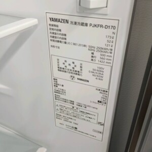 今回査定したYAMAZEN PJKFR-D170は2023年製で比較的新しく、外観・庫内ともに良好な状態が保たれていました。庫内パーツもすべて揃っており、動作確認でも問題がなかったため再販売可能な中古家電として評価しました。