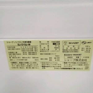 今回は東京都板橋区にお住まいの40代男性・会社員(夫婦世帯/持ち家マンション)のお客様より、シャープ ノンフロン冷凍冷蔵庫 SJ-D15J-W(2023年製)を出張買取にてご依頼いただきました。