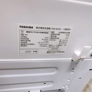今回は東京都江戸川区にお住まいの20代女性・会社員(単身世帯/賃貸マンション)のお客様より、東芝 全自動洗濯機 AW-6GA2(2023年製)を出張買取にてご依頼いただきました。