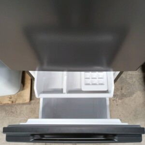 庫内の棚板や野菜ケースも揃っており、内部も清潔に保たれていました。冷却機能についても確認したところ問題なく動作しており、冷蔵・冷凍ともに正常に冷える状態でした。製造年式が新しいこともあり、中古市場でも十分に再販売が見込めるコンディションでした。