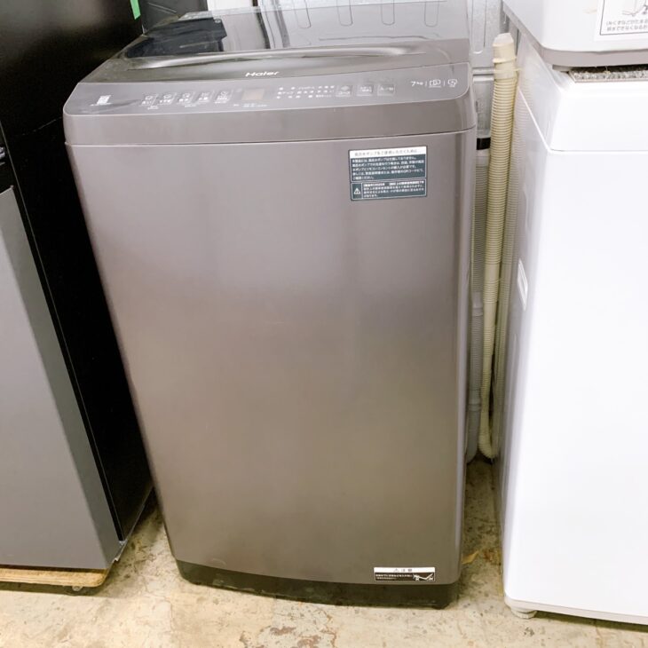 Haier製の洗濯機はコストパフォーマンスの高いモデルとして中古市場でも流通しており、7kgクラスの容量は単身世帯や少人数世帯向けとして需要があるサイズです。当社では自社販売ルートやオンライン販売を活用して再販を行うため、その分査定額にも反映しています。