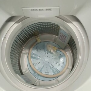動作確認では給水・洗い・すすぎ・脱水の各工程に問題は見られず、通常使用に支障のない状態でした。中古市場でも7kgクラスの全自動洗濯機は需要が安定しているため、再販可能な状態と判断しました。