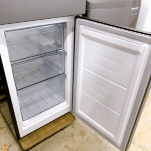 外装ボディは全体的にきれいな状態で、目立つヘコミや大きな傷は確認されませんでした。庫内も清潔な状態が保たれており、棚板・ドアポケット・冷凍室の引き出しなどのパーツも揃っています。