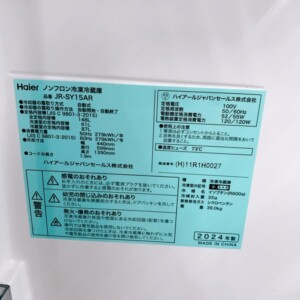 今回は東京都品川区にお住まいの30代男性・会社員(単身/賃貸マンション)のお客様より、Haier ノンフロン冷凍冷蔵庫 JR-SY15AR(2024年製)を出張買取にてご依頼いただきました。