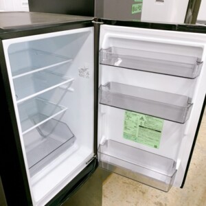 実際に確認すると外装にやや使用感はあるものの庫内は清潔で、冷却動作にも問題がありませんでした。東芝の単身向け冷蔵庫は中古市場でも需要があり、引っ越しシーズンなどは特に流通が活発になる家電です。