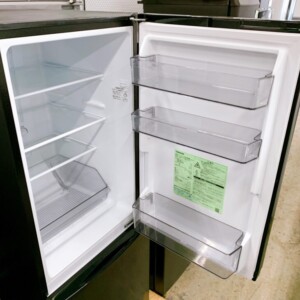 現地では外観の状態、庫内パーツの有無、冷却動作などを確認しました。単身向けの150Lクラスの冷蔵庫は中古市場でも需要があり、特に一人暮らし向けの家電として引き合いがあるサイズです。多少の使用感はありましたが、再販可能な状態と判断しました。