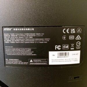 今回拝見したお品物は、MSIの湾曲ゲーミングモニター G243CVです。写真で確認できる範囲では、液晶画面に大きな割れや目立つ欠けは見受けられませんでしたが、画面表面には拭き跡や細かなスレがあり、通常使用による使用感が見られました。背面カバーやスタンド部分にも軽微な擦れがあり、新品同様とはいえない状態です。ただし、筐体そのものに大きな破損はなく、スタンドや電源アダプター、接続ケーブル類も付属していたため、再使用に必要な基本構成はそろっていました。