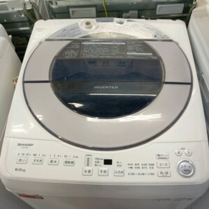 今回査定したのはSHARP(シャープ)全自動電気洗濯機 ES-GV8E-Sです。容量8.0kgの家庭用モデルで、インバーター搭載のため静音性や節電性にも配慮された人気のシリーズです。