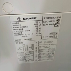 今回は東京都港区高輪にお住まいの40代女性・主婦(親子世帯/分譲マンション)のお客様より、SHARP 全自動電気洗濯機 ES-GV8E-S(2021年製)を出張買取にてご依頼いただきました。