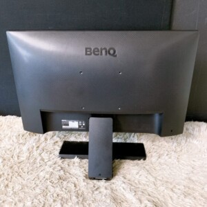 今回拝見したお品物は、BenQの液晶モニター GW2283です。画像から確認できる範囲では、液晶面に大きな割れや欠けは見受けられず、画面表面には軽い拭き跡や細かなスレがあるものの、全体としては比較的落ち着いた印象でした。背面にも通常使用にともなうわずかな擦れはありますが、目立つ破損や大きな傷は確認されていません。スタンドもしっかりそろっており、電源ケーブルも付属していたため、再使用に必要な基本構成が整っている状態でした。中古品としては自然な使用感の範囲に収まっているお品物でした。
