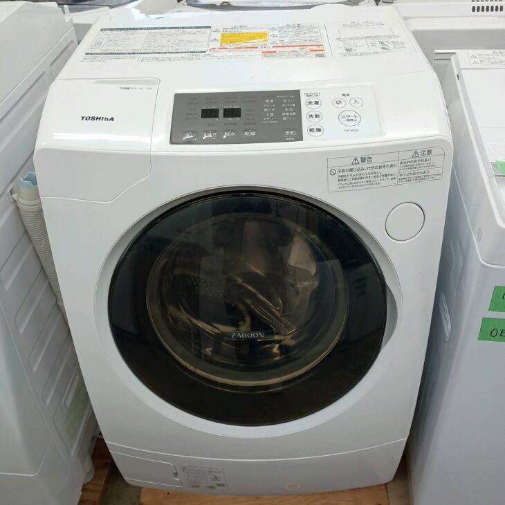 東芝のTW-95Gシリーズは家庭用ドラム式洗濯機として中古市場でも安定した需要があるモデルです。特に9kgクラスは単身世帯からファミリー世帯まで幅広く使用できる容量のため、リユース市場でも流通が多いサイズとなっています。