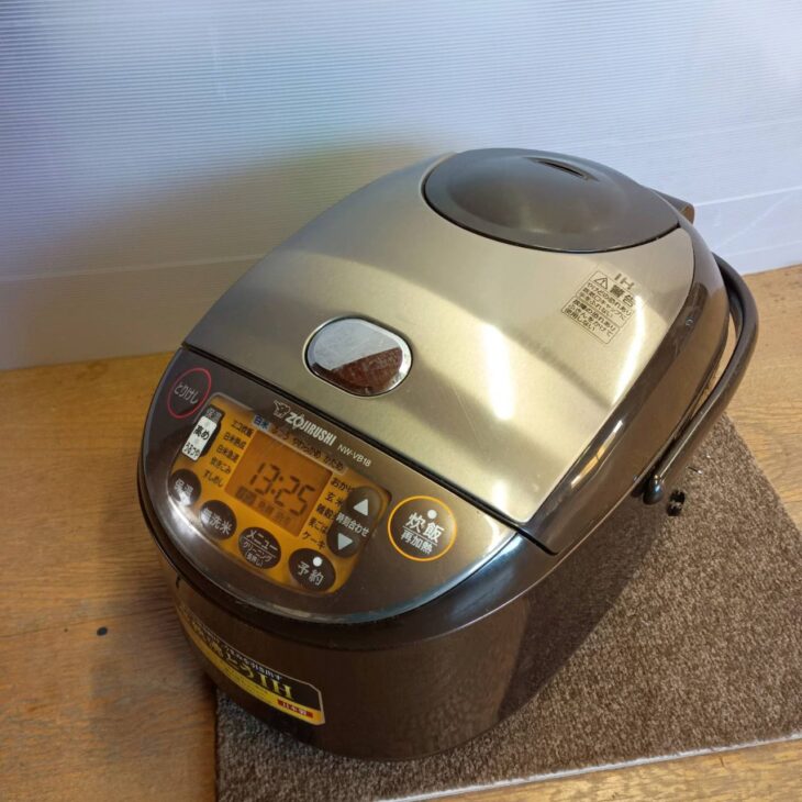 象印のIH炊飯ジャーNW-VB18は家庭用の一升炊きモデルとして流通量が多く、中古市場でも比較的安定した需要があります。今回のお品物は外装に使用感が見られる点が査定に影響しましたが、内釜の状態が比較的良好で動作に問題がないことを評価しました。