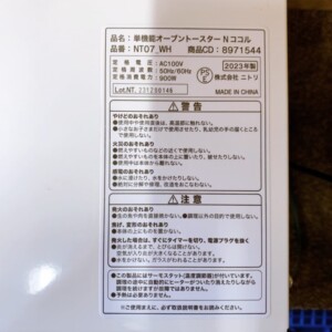 今回は東京都足立区にお住まいの30代男性(自営業・単身世帯・賃貸アパート)より、ニトリ 単機能オーブントースター Nココル NT07_WH(2023年製)を出張買取にてご依頼いただきました。