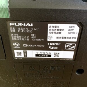今回は東京都渋谷区にお住まいの30代男性・会社員・単身世帯・賃貸(マンション)のお客様より、FUNAI 液晶カラーテレビ FL-43U3030(2020年製)43インチを出張買取にてご依頼いただきました。