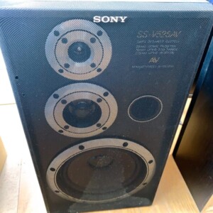 拝見したSONY SS-V525AVは、長期間使用されていたため外装やスピーカーグリル部分に細かな擦れや軽い汚れが見受けられる状態でした。エンクロージャー(木製キャビネット)にもわずかな擦れ跡がありましたが、目立つ割れや大きな欠けなどは確認されませんでした。スピーカーユニットのコーン部分も破れなどは見られず、音出し確認では問題なく再生が可能でした。付属のスピーカーケーブルは使用感がある状態でしたが接続自体には問題なく、ペアで使用できる状態でした。全体として中古オーディオ機器として再利用可能なコンディションでした。