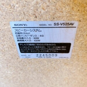 東京都台東区へ出張買取 SONY スピーカーシステム SS-V525AV 使用感ありのため適正価格で査定しました