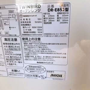 東京都清瀬市へ出張買取 TWINBIRD オーブンレンジ DR-E852 2024年製 使用感少なめのため高価査定しました