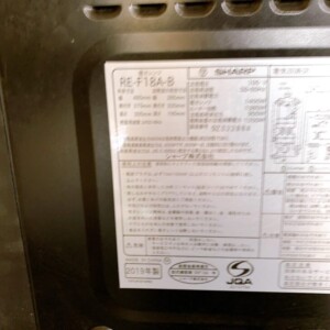 東京都東久留米市へ出張買取 SHARP オーブンレンジ RE-F18A-B 2019年製 使用感ありのため適正価格で査定しました