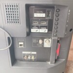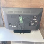 本体外観には使用に伴う細かな擦れや軽微な汚れが見受けられましたが、液晶パネルに大きな割れや表示不良は確認されませんでした。背面端子にはHDMI端子・USB端子・LAN端子・地デジ/BS・110度CSアンテナ端子などが搭載されており、基本的なテレビ機能として問題なく利用できる状態でした。スタンドも付属しており、家庭用テレビとしてそのまま設置可能な状態でした。