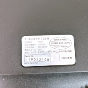 今回査定した商品はアイリスオーヤマ IHコンロ IHK-T35-Bです。卓上タイプのIH調理器で、家庭用のコンパクトな電気調理器具として販売されているモデルです。