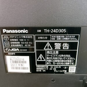 今回査定した商品はPanasonic 液晶テレビ TH-24D305(24型)です。背面ラベルから2017年製であることを確認しました。