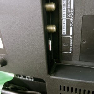 本体は使用されていた中古品のため、画面やフレーム部分に細かな擦れや拭き跡が見受けられましたが、大きな割れや破損はなく実用上問題のない状態でした。スタンドと電源アダプターも付属しており、B-CASカードも装着されているためテレビ視聴が可能な状態でした。