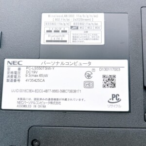 背面やヒンジ部分にも破損はなく、一般的な中古ノートパソコンとしては標準的な使用感の範囲でした。中古市場でもNEC製のノートパソコンは一定の需要があるため、状態を踏まえて査定を行いました。
