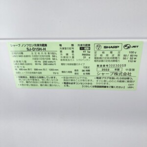 今回は東京都渋谷区千駄ヶ谷にお住まいの40代男性より、SHARP ノンフロン冷凍冷蔵庫 SJ-D15H-H(2022年製)を出張買取にてご依頼いただきました。
