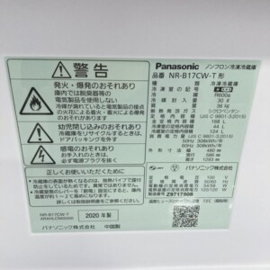 今回は東京都新宿区にお住まいの30代女性より、Panasonic ノンフロン冷凍冷蔵庫 NR-B17CW-T(2020年製)を出張買取にてご依頼いただきました。