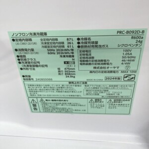 東京都中野区へ出張買取 IRIS OHYAMA PRC-B092D-B 2024年製 冷凍冷蔵庫 外装に軽い使用感ありのため適正価格で査定しました