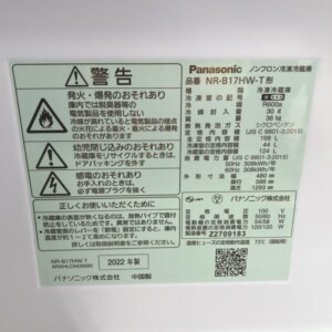 今回は東京都豊島区にお住まいの40代男性より、Panasonic ノンフロン冷凍冷蔵庫 NR-B17HW-T(2022年製)を出張買取にてご依頼いただきました。