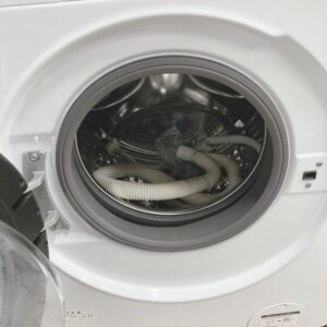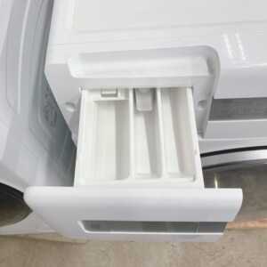 ドラム内部についても洗濯槽はきれいな状態で、洗剤ケースやパッキン部分にも強い汚れは見られませんでした。給排水ホースなどの付属パーツも揃っており、動作確認でも給水・回転・排水など問題なく動作する状態でした。