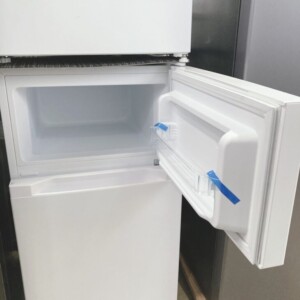 今回お引き取りしたのは、コンパクトサイズの2ドアタイプ冷蔵庫PRC-B092D-Wです。容量は87L(冷蔵61L・冷凍26L)で、一人暮らしやセカンド冷蔵庫として利用されることが多いモデルです。