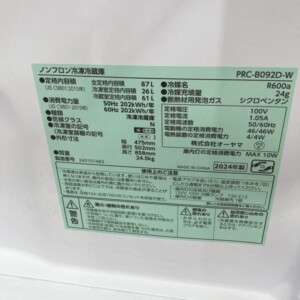 今回は東京都荒川区にお住まいの40代女性(主婦・親子世帯・賃貸マンション)より、オーヤマ 冷凍冷蔵庫 PRC-B092D-W(2024年製)を出張買取にてご依頼いただきました。
