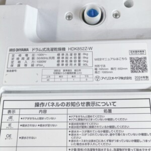 今回は東京都港区新橋にお住まいの40代女性(会社員・夫婦世帯・分譲マンション)より、IRIS OHYAMA ドラム式洗濯乾燥機 HDK852Z-W(2024年製)の出張買取をご依頼いただきました。