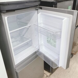 庫内の棚板や野菜ケースなどのパーツも揃っており、割れや欠けなどは見られませんでした。庫内も清掃されており、冷却動作も問題なく確認できる状態でした。中古市場でも需要の高い単身向け冷蔵庫のため再販が見込める商品です。