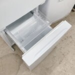 庫内の棚やドアポケット、野菜ケースなどの付属パーツも欠品なく揃っており、庫内の汚れやにおいもほとんど見受けられませんでした。冷却動作も問題なく、冷蔵・冷凍ともに正常に作動していることを確認しています。2023年製と比較的新しいモデルのため、再販市場でも需要が見込める状態でした。